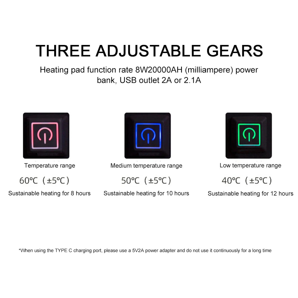 Guangdong 5V USB Heating Pad for Outdoor Camping 3-Temp