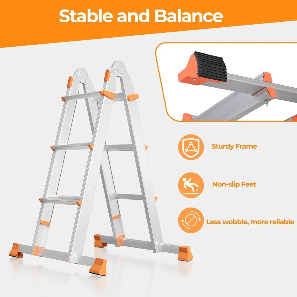 Aluminum Multi-Position Ladder With Stabilizer And Anti Slip Treads