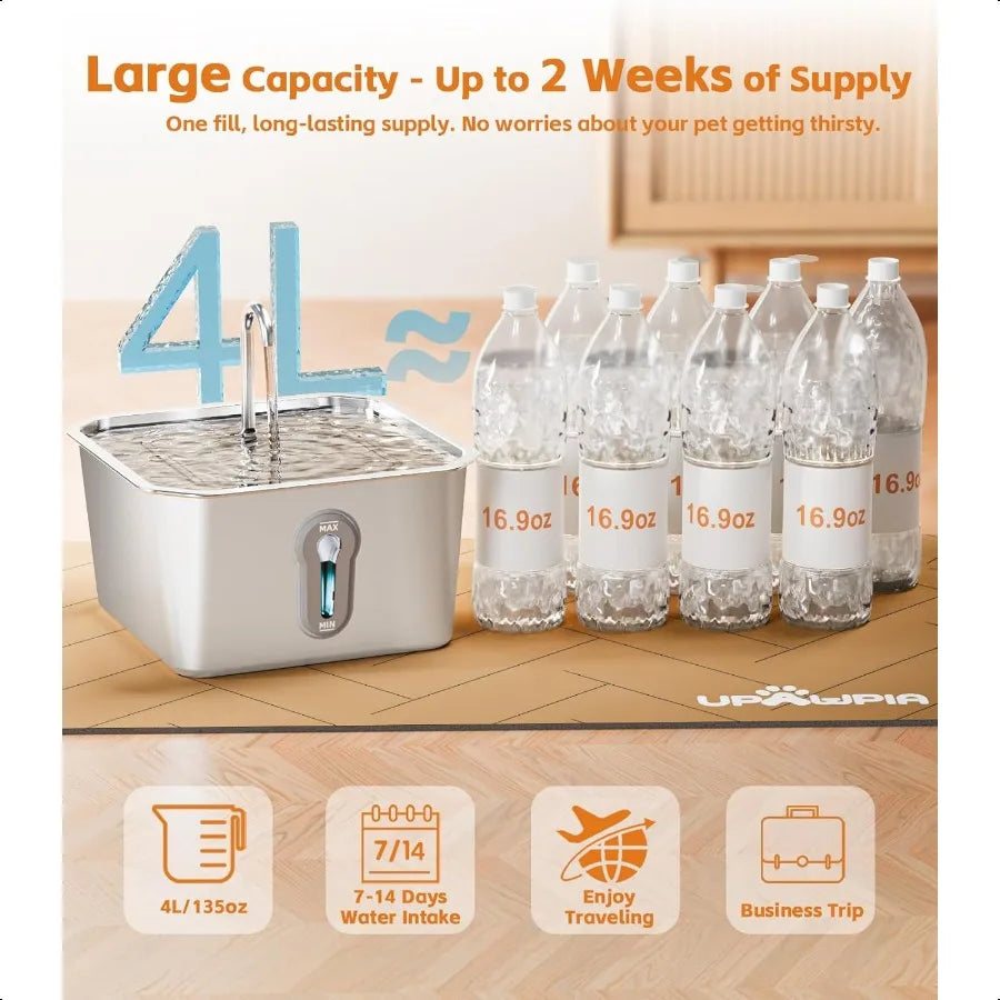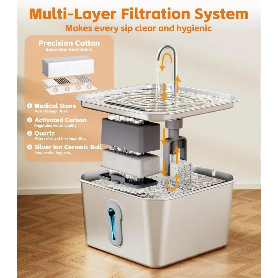 Keep your cat hydrated with a sleek, stainless steel fountain that blends seamlessly into your daily routine.