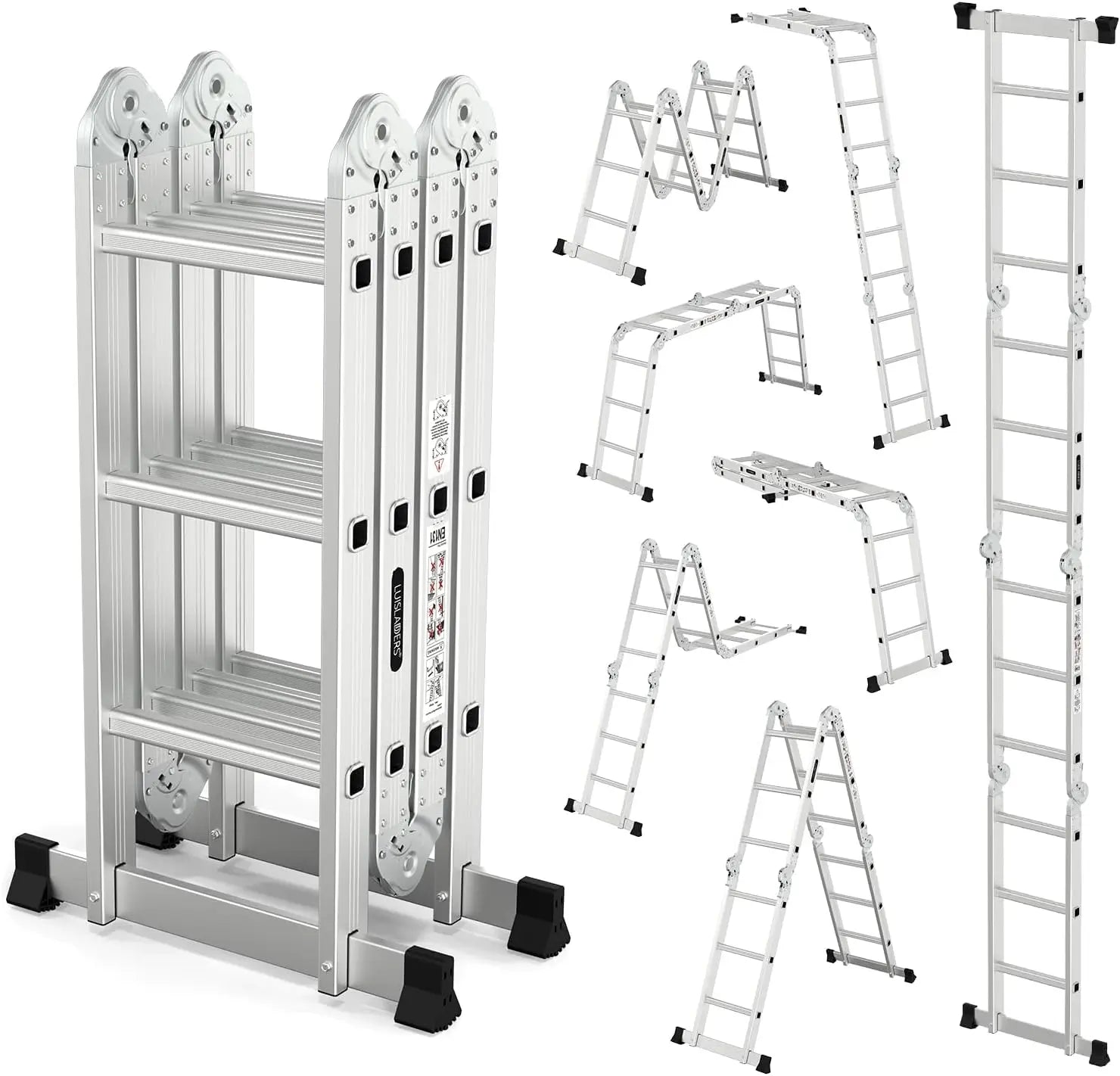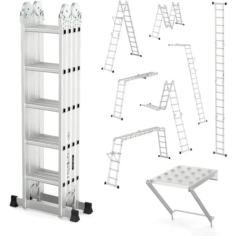 - Multi-function design lets you switch between scaffold, leaning ladder, and stepladder, and reshape to fit different heights and tasks.