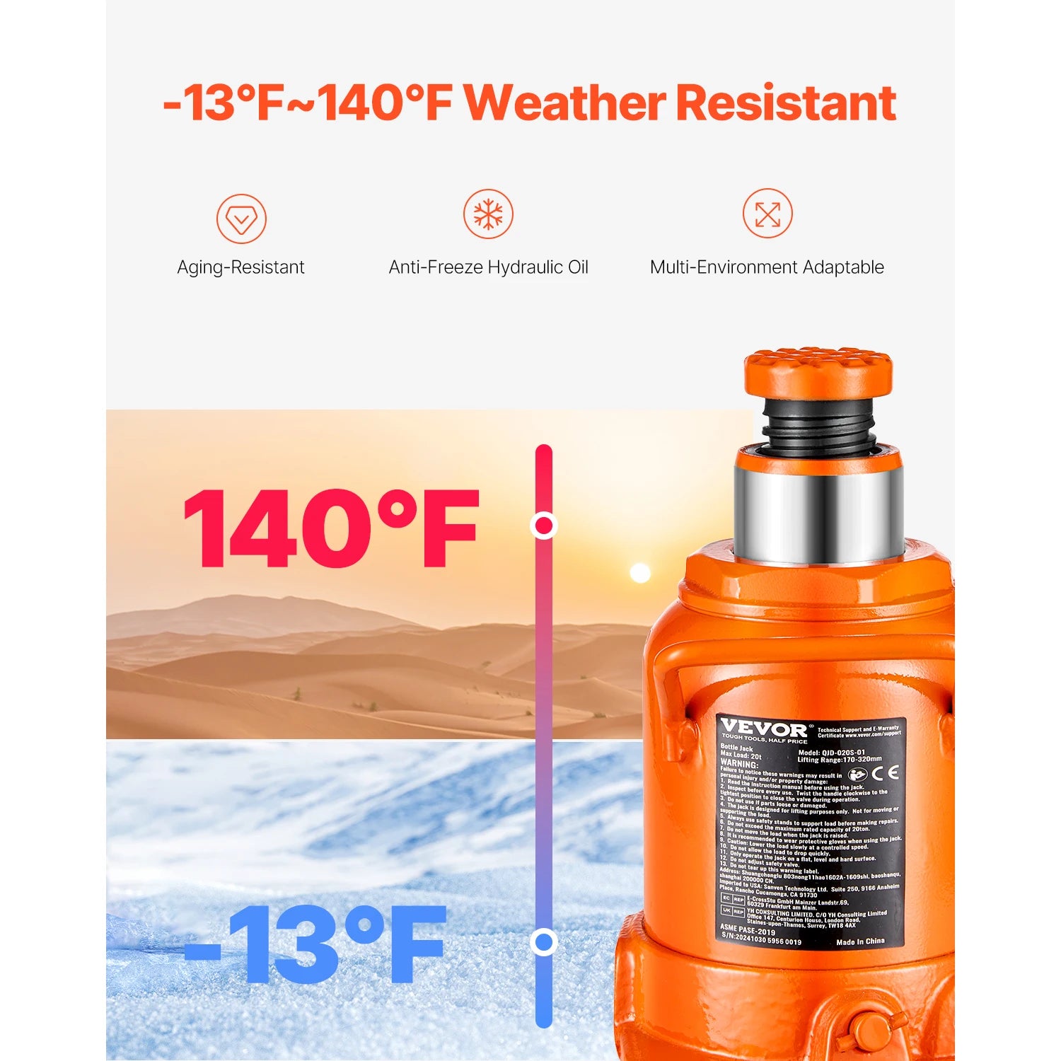 - Overload protection valve limits the lifting capacity, giving you reliable safety during tire changes, maintenance, and under-vehicle work.