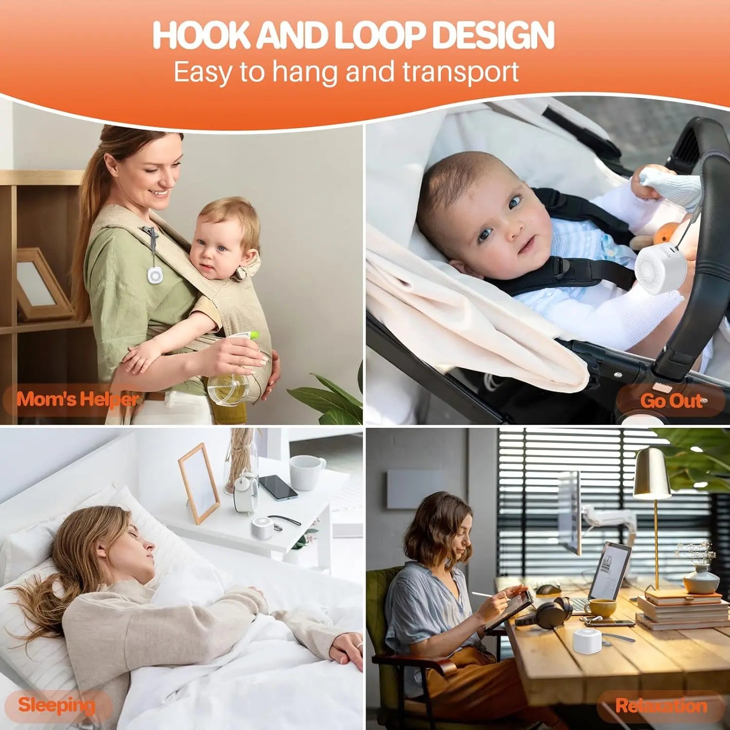 Turn travel nights into peaceful moments with a travel-ready white noise sound machine that glows with a soft, colorful light to soothe and comfort your baby wherever you are.